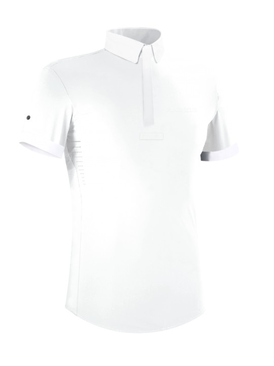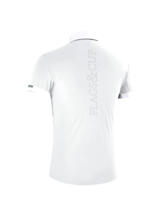 Polo de concours technique, léger, confortable et respirant, idéal pour la compétition. Dos micro perforé ton sur ton FLAGS&CUP et côtés pour une évaporation optimale pendant l’effort. Col blanc chemise boutonné. Passant de cravate amovible sur boutons. Manches courtes. Impression FLAGS&CUP caoutchouc sur cœur. Etiquette caoutchouc FLAGS&CUP bas de manche gauche. Composition : 85% polyester, 15% spandex.
