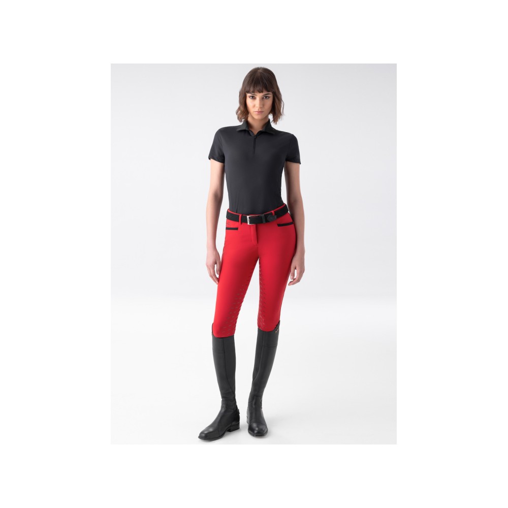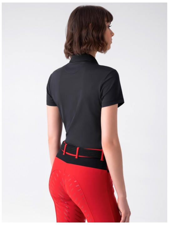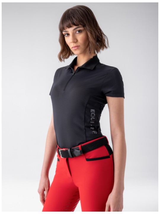 Bénéficiez d’un confort et d’une respirabilité exceptionnels avec notre second skin de compétition pour femme sans coutures. Fabriquée dans un tissu ultra-extensible, elle offre une tenue confortable et impeccable. Le logo Equiline sur la poitrine ajoute une touche de sophistication. Grâce à sa coupe ergonomique, ses détails en micro-trous et sa grande respirabilité, elle vous garde au frais et au sec lors des compétitions intenses. Bénéficiez d’un confort en toutes circonstances grâce à ses capacités de séchage rapide.