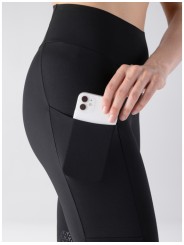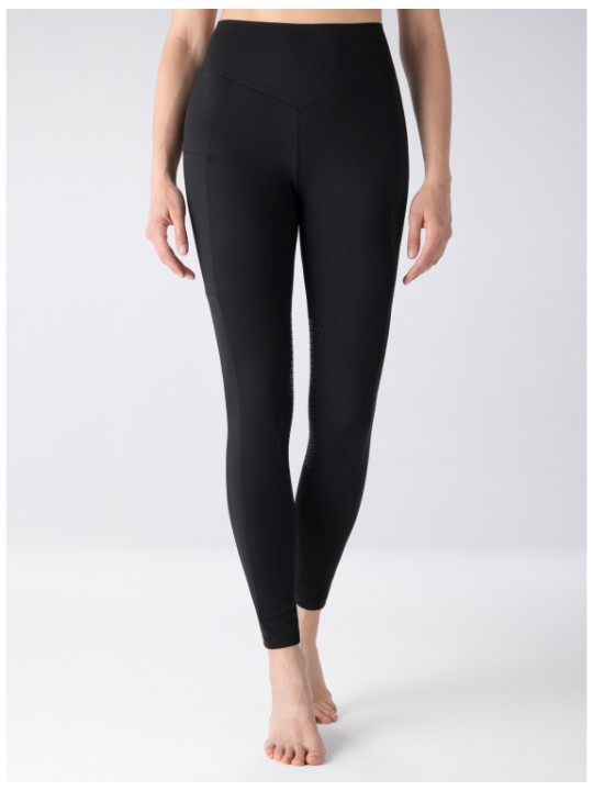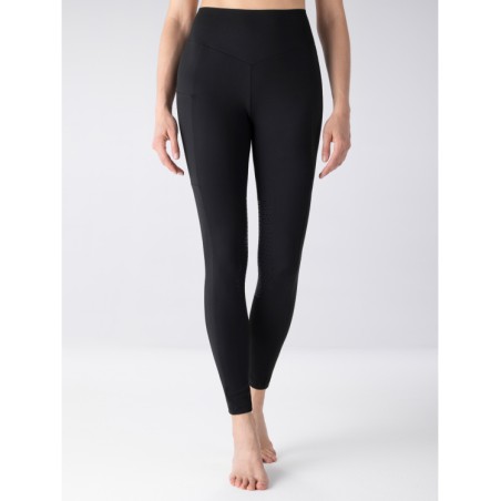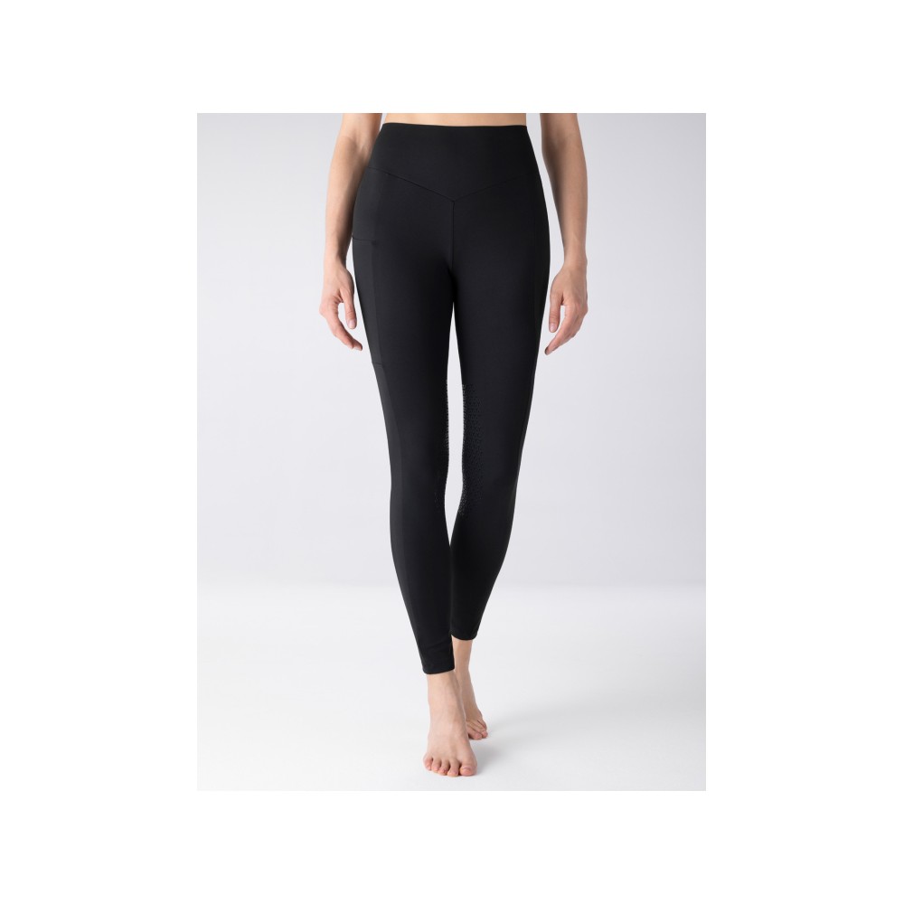 Donnez du caractère à votre ensemble de cavalière avec notre legging knee grip à taille haute. Confectionné dans un tissu extensible et respirant, ce legging offre un confort exceptionnel. La bande adhérente à l'intérieur de la taille garantit une tenue sûre. Avec sa coupe ergonomique et envoutante, ce legging met en valeur votre silhouette. Le logo Equiline pailleté au dos ajoute une touche de brillance. Doté d'une poche pratique pour téléphone sur la jambe droite et d'un système d’adhérence pour les genoux, ce legging combine style et fonctionnalité pendant que vous êtes à cheval.