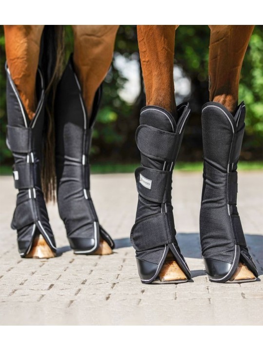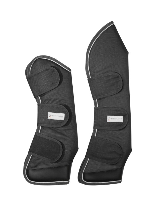 Guêtres de transport anatomiques dotées de trois solides fermetures à scratch pour un maintien optimal sur la patte. Protection maximale grâce à une mousse intérieure de 1,5 cm d’épaisseur qui absorbe les chocs et à sa coupe haute. Doublure intérieure moelleuse en polaire pour un confort optimal. Matière extérieure extrêmement résistante et renforcée au niveau du bourrelet.