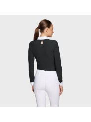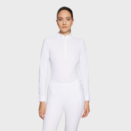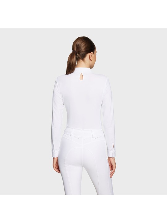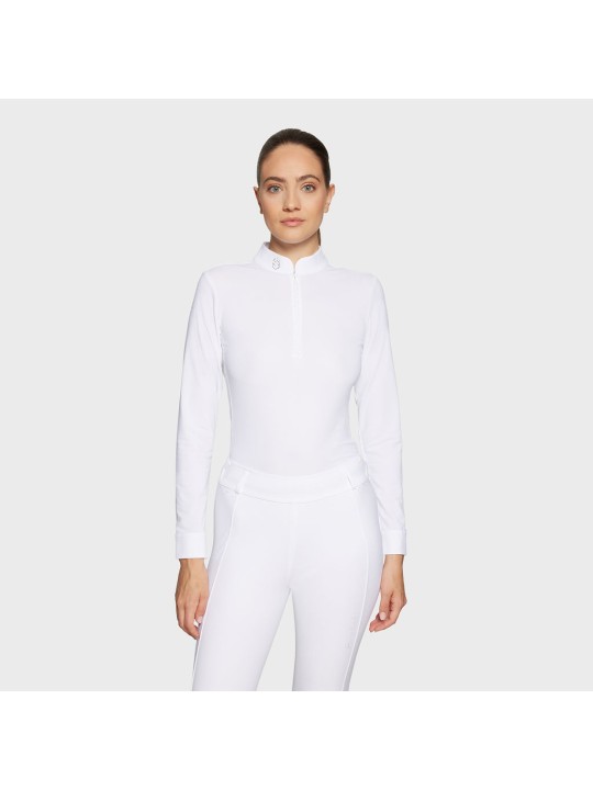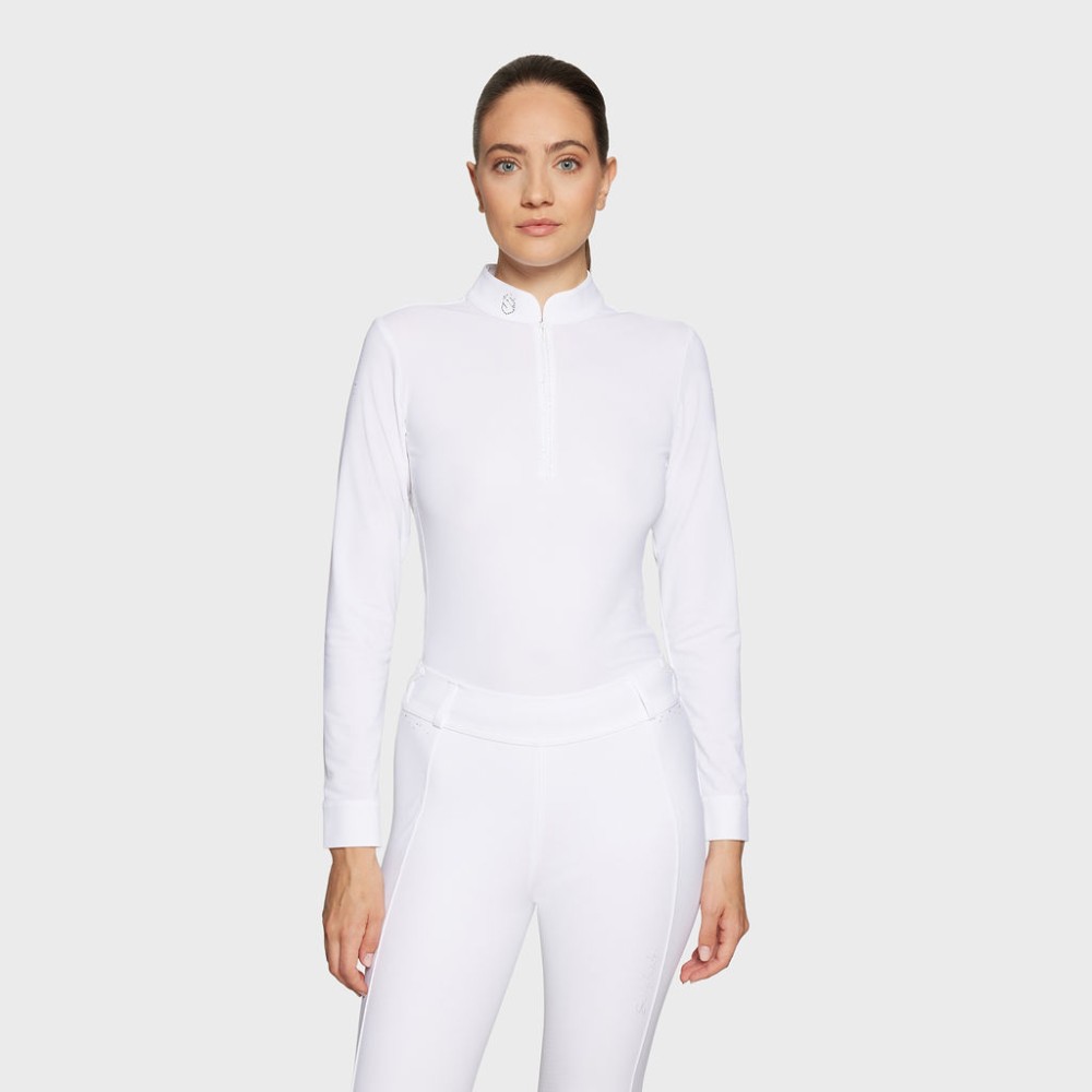 La chemise Samshield Aloise est un exemple d'intégration parfaite du style contemporain et de la fonctionnalité dans la mode équestre. Méticuleusement conçue, cette chemise présente une silhouette raffinée et ajustée qui passe sans effort de l'écurie à des occasions plus formelles. Fabriquée dans un tissu technique de première qualité, la chemise Aloise offre des propriétés exceptionnelles de respirabilité, d'extensibilité et d'évacuation de l'humidité, garantissant un confort optimal pendant les promenades. Sa composition innovante maintient une sensation de légèreté tout en offrant une apparence soignée. La chemise est ornée d'un logo Samshield subtil, d'une fermeture éclair encadrée de cristaux Swarovski et d'un col sophistiqué, qui contribuent tous à son esthétique raffinée. Avec sa fusion harmonieuse de fonctionnalité moderne et d'élégance intemporelle, la chemise Samshield Aloise est un choix polyvalent pour les cavaliers qui recherchent des vêtements discrets mais chics qui complètent parfaitement leur garde-robe équestre et quotidienne. Composition Tissu 1 : 72%PA / 28%EA Tissu 2 Col : 84%PES 16%EA
