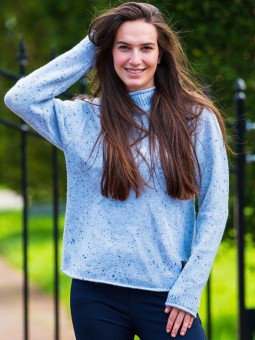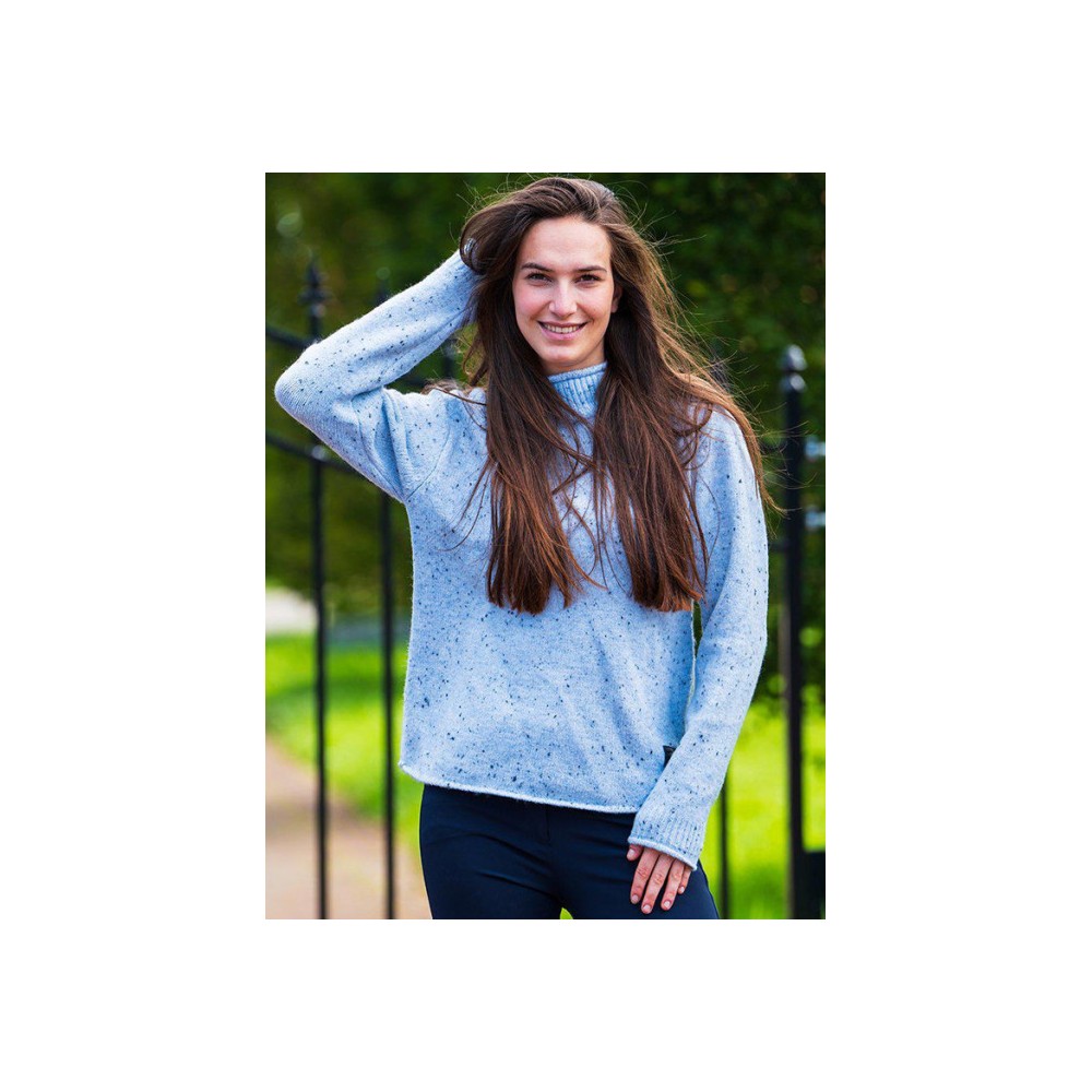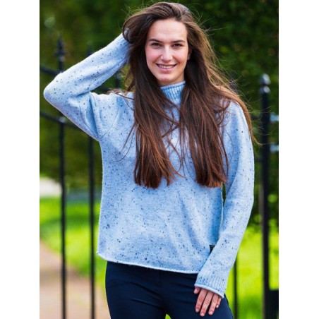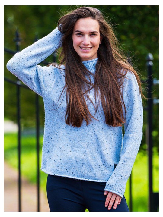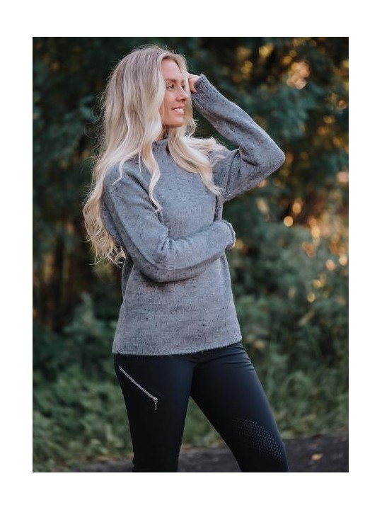 Tricoté dans un fil multifibres au toucher très doux, ce pull-over à l'effet chiné offre à la cavalière un agréable contact.