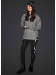 Chaud par sa matière, il l'est aussi par sa forme : col ras du cou et manches ajustées avec bords roulés.