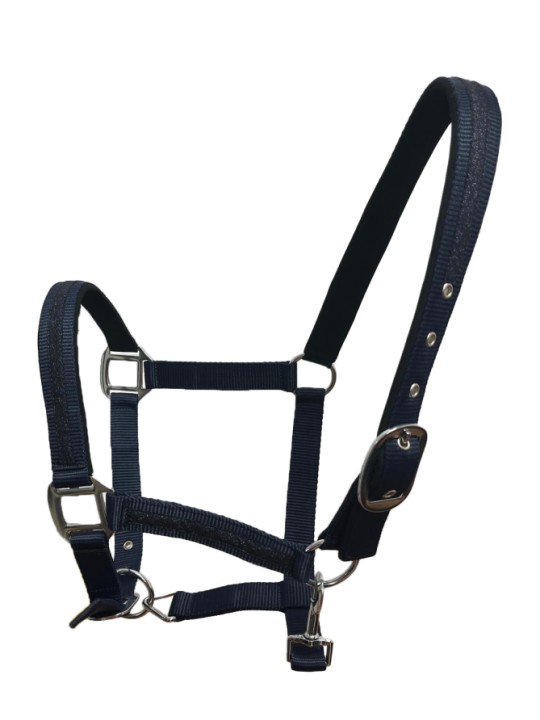 Licol nylon avec paillettes, doublé mouton synthétique ton sur ton. 2 boucles de réglage et 1 mousqueton à ouverture rapide. Longe assortie tressée à mousqueton. Bouclerie inox.