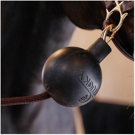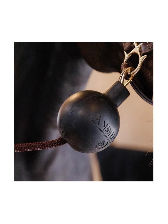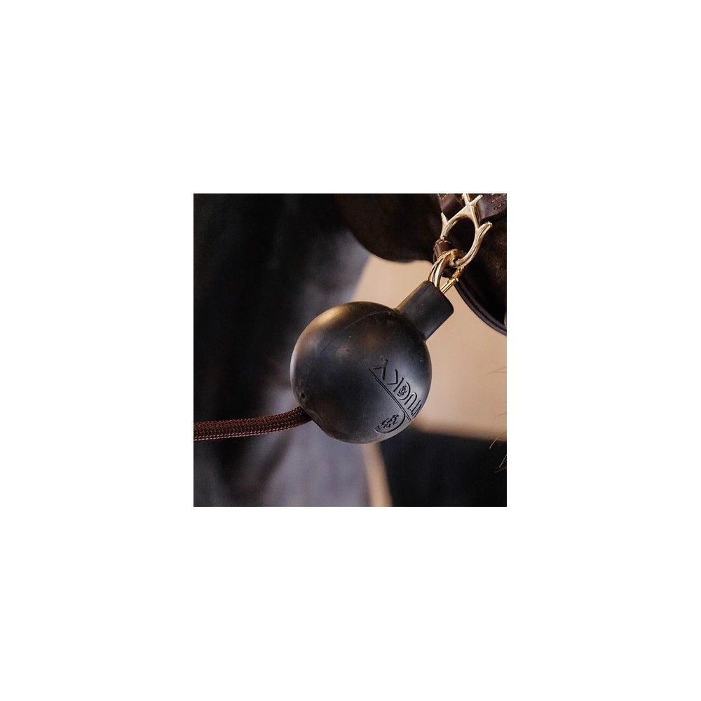 Une solution pratique et efficace pour éviter que les chevaux ne se blessent, ne s'emmêlent dans les longes d'attache ou ne la mordent. L'ouverture de la balle s'adapte parfaitement à la longe pour éviter qu'elle ne se déplace. La balle en caoutchouc est une protection silencieuse, elle protège la longe et votre mur : pas de bruit ou de dégâts lorsque vous détachez votre cheval.