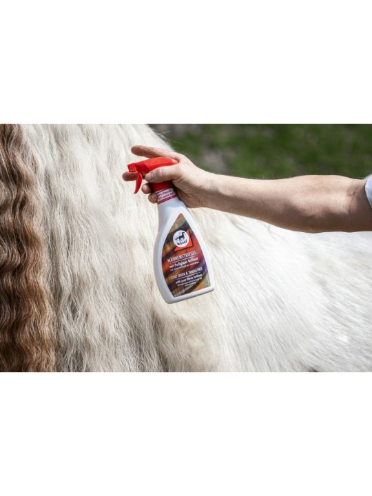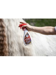 Pour un entretien facile de la robe, de la crinière et de la queue. Plus de crins emmêlés ni de noeuds. Donne une brillance soyeuse.