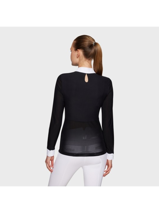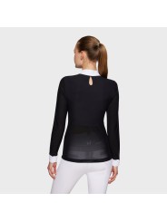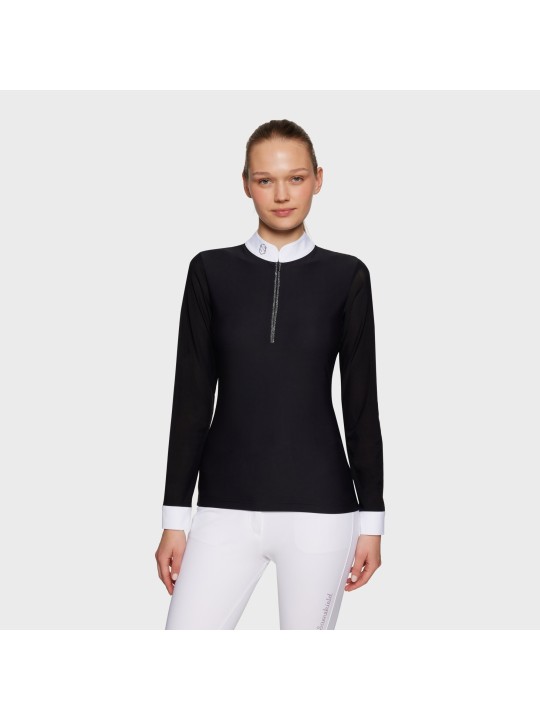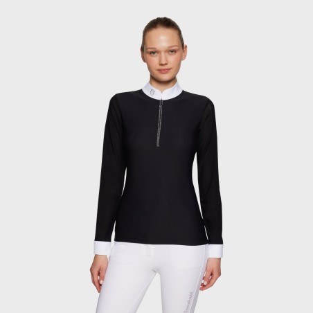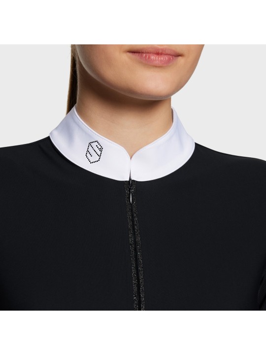 Haut de compétition Aloise Boreal manches longues Design raffiné avec logo Swarovski®, zip avec détails crystal fabric et mesh sur les manches Tissu respirant et extensible à séchage rapide Conçu de manière durable avec une finition infroissable et anti-boulochage, lavable en machine Indice UPF 50+ pour protéger des rayons du soleil |