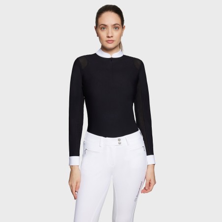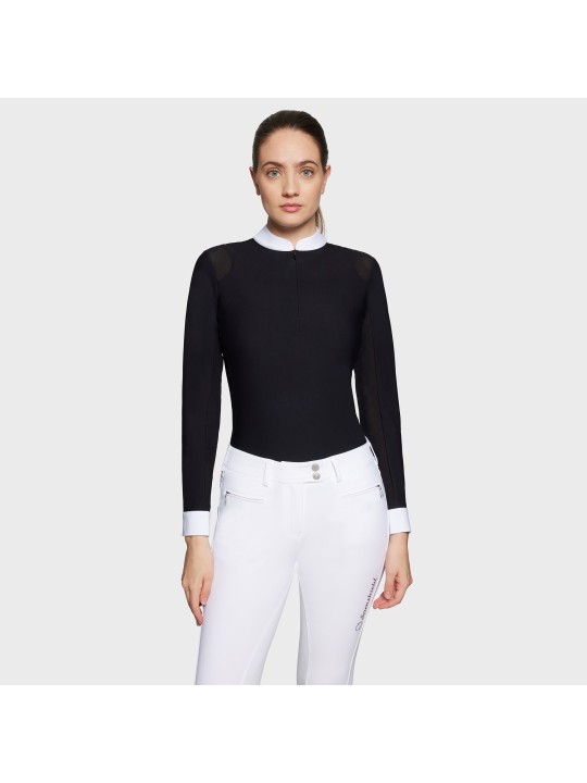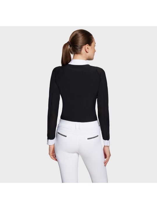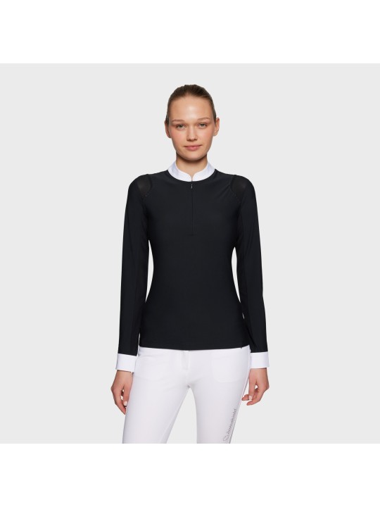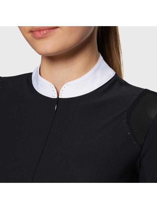 Haut de compétition Ysee manches longues Design élégant avec logo brodé sur le col, zip invisible et détails Swarovski® Tissu respirant et extensible à séchage rapide Conçu de manière durable avec une finition infroissable et anti-boulochage, lavable en machine Indice UPF 50+ pour protéger des rayons du soleil |
