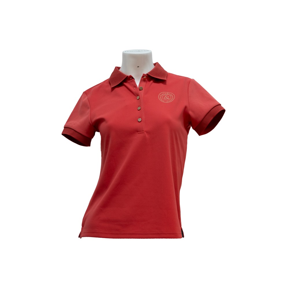 Polo ANZIA – Élégance et confort Alliant confort et féminité, le polo ANZIA est parfait pour un look élégant en toute circonstance. Sa coupe soignée et ses détails raffinés en font un indispensable du dressing des cavalières. Caractéristiques : ? Manches courtes pour une liberté de mouvement optimale ? Col bord-côte avec bande motif tissé chevrons ton sur ton ? Patte de boutonnage à 5 boutons, galonnée pour une touche d'élégance ? Intérieur de col contrasté et bande de propreté contrastée pour une finition soignée ? Fentes latérales pour plus d’aisance ? Logo F&C imprimé au centre de la demi-lune ? Logo Flags&Cup sur le cœur ?? Composition : 100% polyester, piqué 150g Un polo léger, confortable et élégant, idéal pour allier style et technicité !