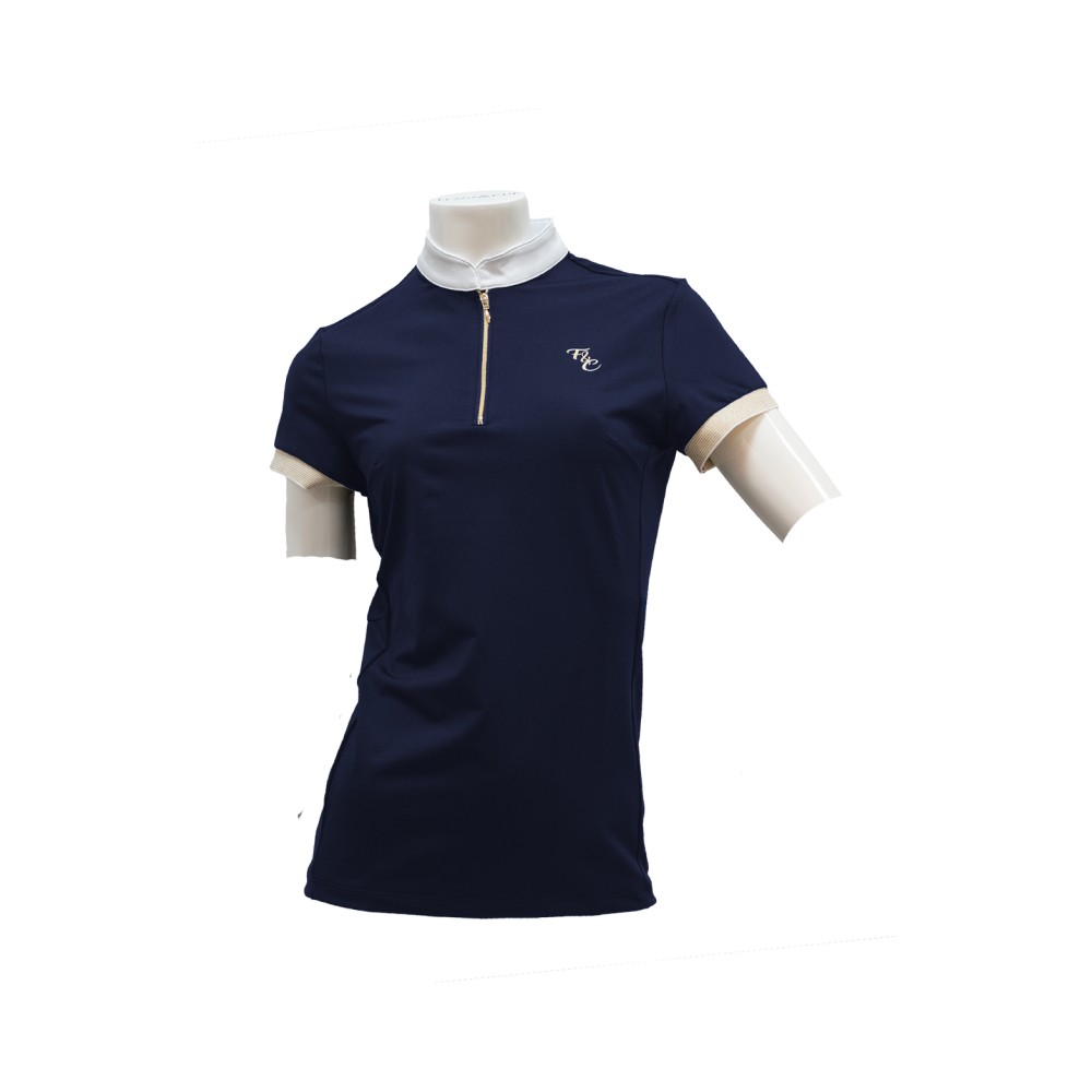Polo de concours Andria – Élégance et performance Souple, léger, confortable et respirant, le polo de concours Andria de Flags&Cup est idéal pour la compétition. Conçu pour allier élégance et performance, il met en valeur un style féminin raffiné avec ses finitions dorées et son logo F&C brodé au cœur. Caractéristiques : ? Manches courtes pour une liberté de mouvement optimale ? Fermeture zippée à l’avant pour un enfilage facile ? Col blanc contrastant, parfait pour les concours ? Tissu respirant pour un confort maximal même en plein effort ? Finitions dorées sur les manches pour une touche d’élégance ?? Composition : 85% polyester, 15% jersey élastique Idéal pour les cavalières recherchant un polo technique et stylé pour leurs compétitions !