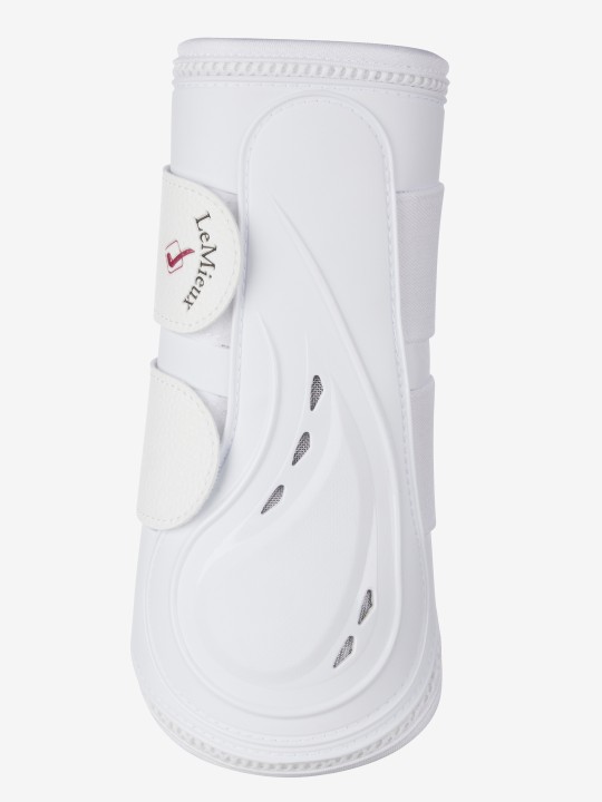 Des guêtres souples LeMieux nouvelle génération offrant une meilleure protection globale. La coque extérieure en PU moulé offre un soutien supérieur et protège des chocs, tout en restant très flexible. Ces guêtres sont suffisamment solides pour dévier un impact, mais ne sont en aucun cas restrictives ou rigides. Contrairement aux guêtres souples classiques comportant une seule zone intérieure rembourrée, la guêtre ProShell offre une protection à 360 degrés. Les aérations stratégiquement placées permettent d’évacuer l’excès de chaleur, tandis que la doublure intérieure souple et perforée favorise la circulation de l’air et reste douce et agréable pour la jambe du cheval. Ces guêtres sont extrêmement polyvalentes, suffisamment résistantes pour être utilisées en extérieur, mais aussi élégantes pour être utilisées en représentation.