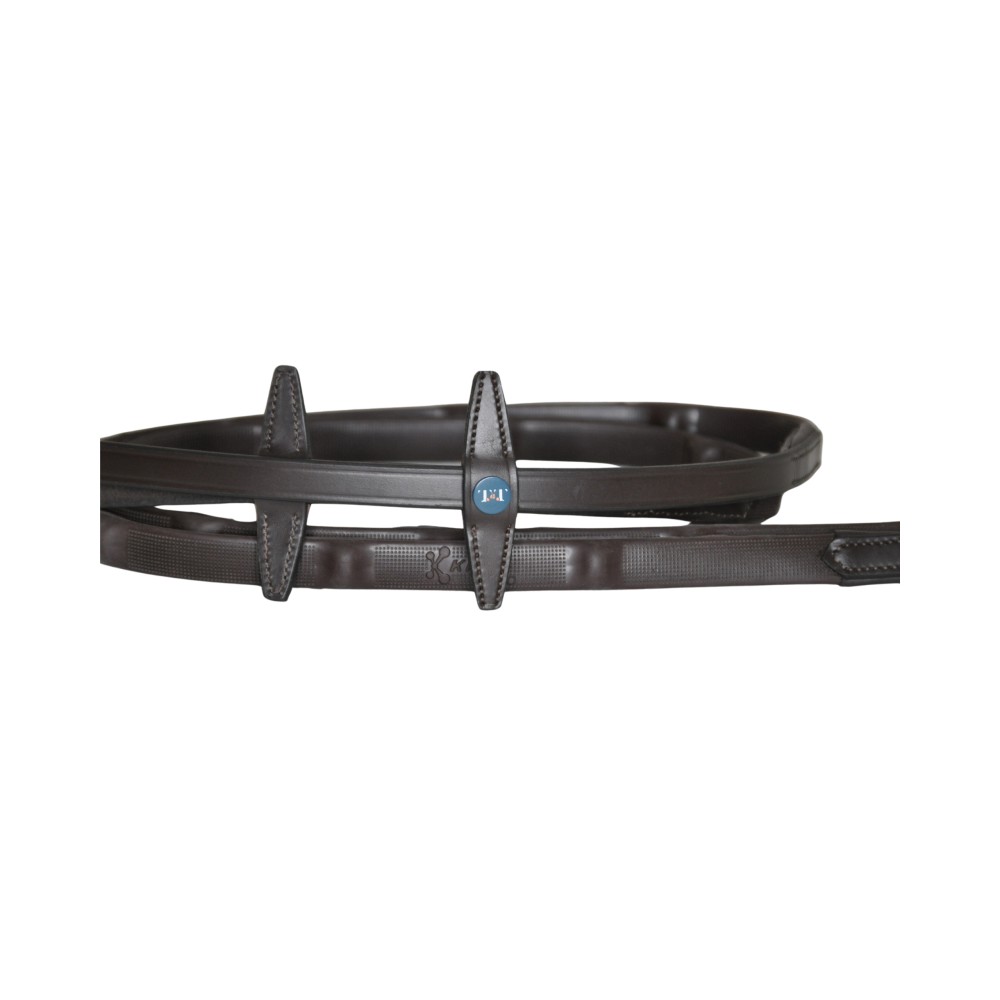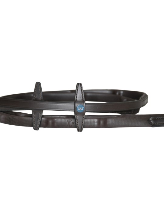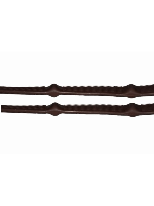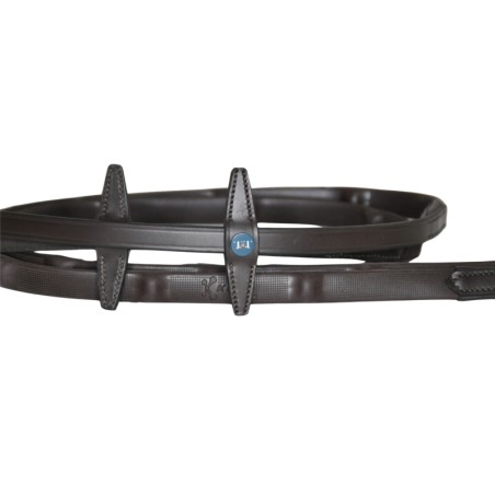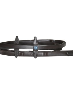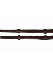 Rênes caoutchouc et cuir à arrêtoirs intégrés.