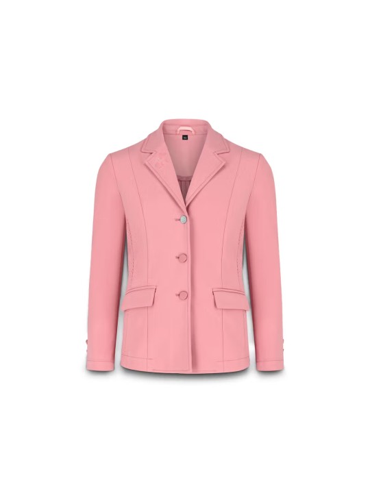 Conçue pour les jeunes cavalières qui veulent performer avec style, cette veste de concours allie tissu respirant et extensible avec une coupe ajustée pour garantir confort et élégance dans le ring. Spécialement conçue pour les petites filles qui rêvent de grands succès, cette veste présente un logo Sammy avec des paillettes pour une touche stylée et ludique.