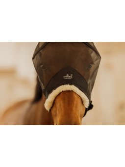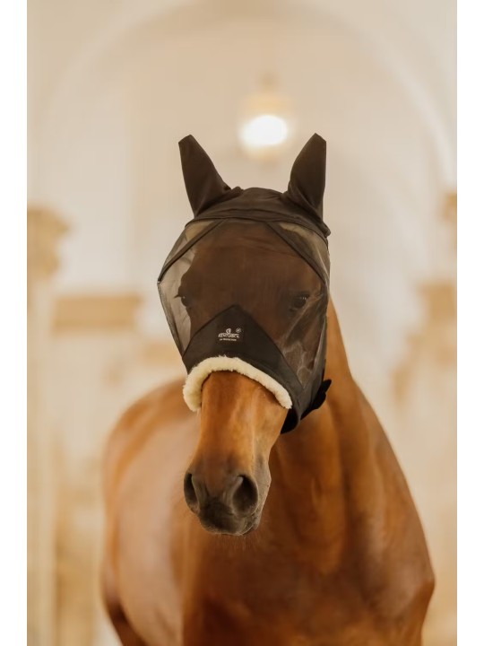 Le masque anti-mouches Skin Friendly avec oreilles protège les yeux et les oreilles de votre cheval contre les mouches et autres insectes sans couvrir le nez. La peau de mouton artificielle sur le nez et autour du front est parfaite pour les chevaux ayant une peau sensible.