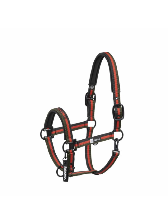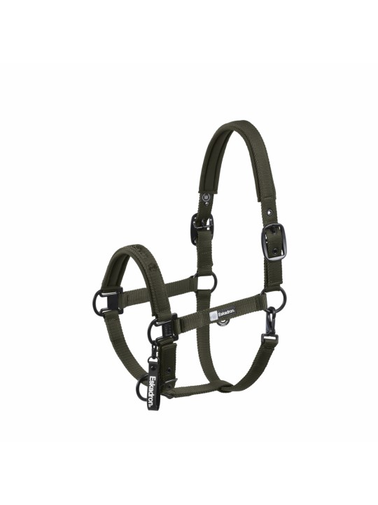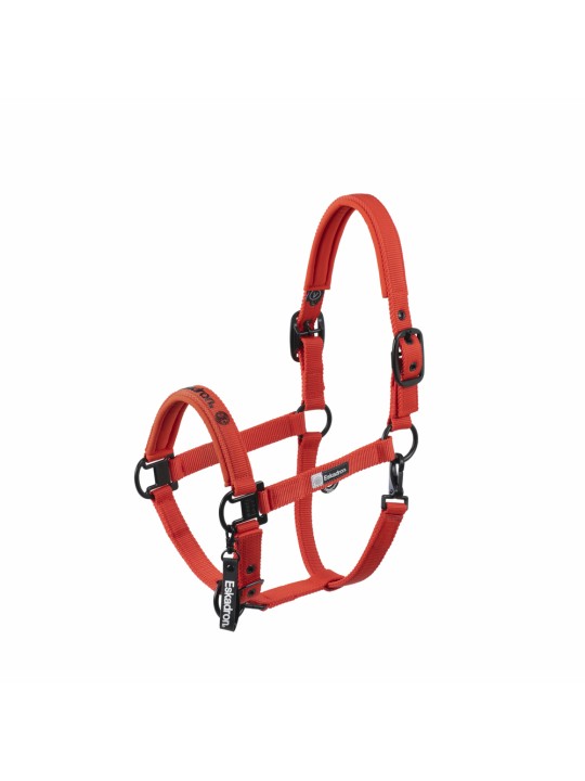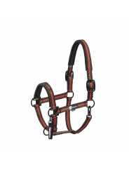 Sa têtière et sa muserolle sont doublées de néoprène et ajustables par boucles.