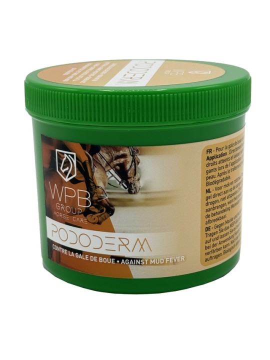 Pour la gale de boue Application : Directement mettre le pododerm sur les endroits atteints et laisser sécher, ne pas rincer. Porter des gants lors de l’application, car le produit peut teinter la peau. Après le traitement, mettre du baume de Warendorf. Biodégradable.