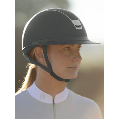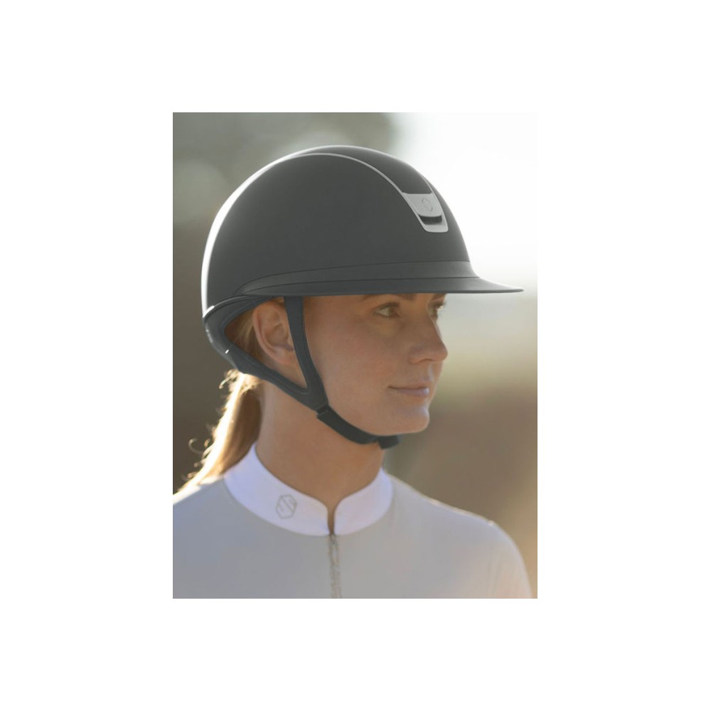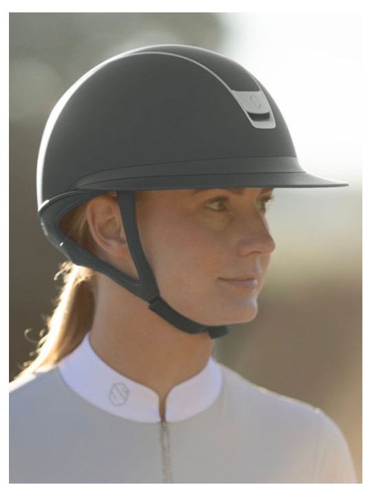 • un ajustement parfait grâce à sa nouvelle jugulaire intégrée et adaptée à toutes les coiffures, y compris le chignon des cavalières de dressage