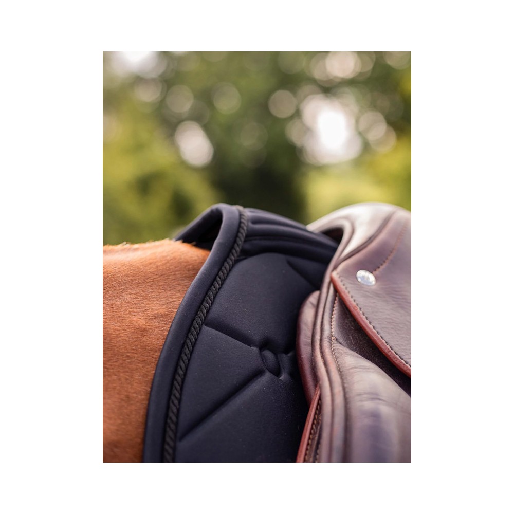 Chaque détail a été pensé pour garantir une stabilité parfaite sous la selle, une répartition optimale des pressions et un bien-être maximal pour le cheval. Son design premium, sobre et raffiné, reflète le savoir-faire Samshield en combinant esthétique discrète et technicité de pointe.