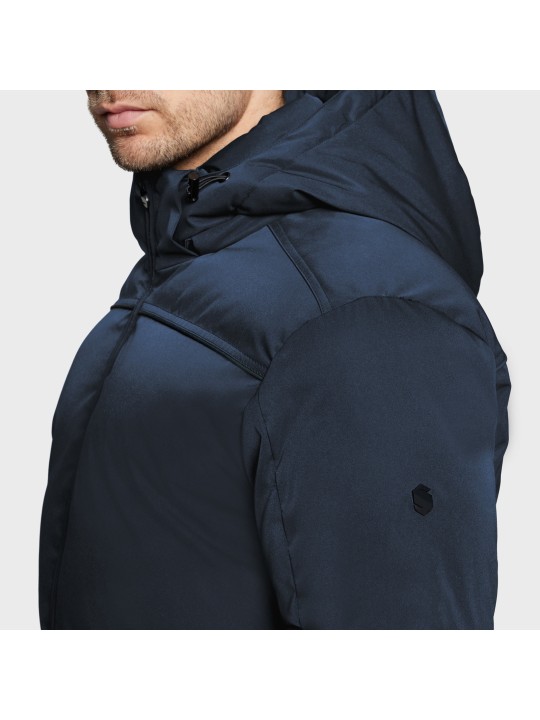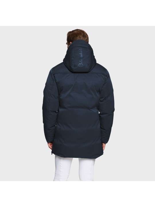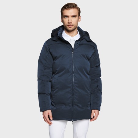 Doudoune mi-longue à capuche et à ouvertures latérales pour hommes Martin. Idéal pour les cavaliers souhaitant rester au chaud et au sec à cheval, avec un style en haut des cuisses.