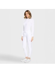Les broderies Ferna ton sur ton sur la cuisse, délicatement rehaussées de cristaux Swarovski® et accompagnées de décors ton sur ton avec cristaux sous la ceinture arrière, apportent une signature Samshield lumineuse et raffinée. Les poches zippées, dont une spécialement conçue pour le téléphone, allient praticité et style, tandis que le grip garantit confort et adhérence optimale à cheval. Pensé pour les cavalières les plus exigeantes, le Breeches Capucine Crystal Ferna conjugue performance, féminité et raffinement dans chaque détail.