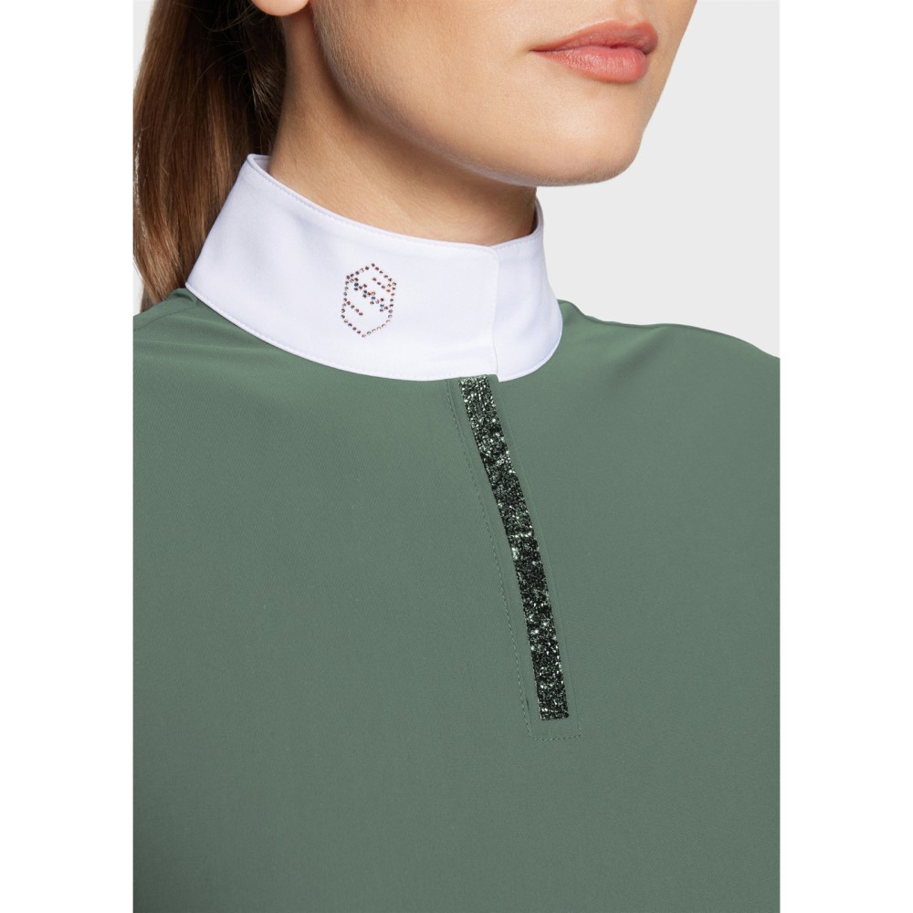 Le haut de compétition Roxy Premium incarne une élégance maîtrisée, pensée pour les cavalières qui recherchent précision et distinction. Sa coupe cintrée associée à un col haut classique structure la silhouette avec justesse et apporte une allure nette, naturellement sophistiquée.