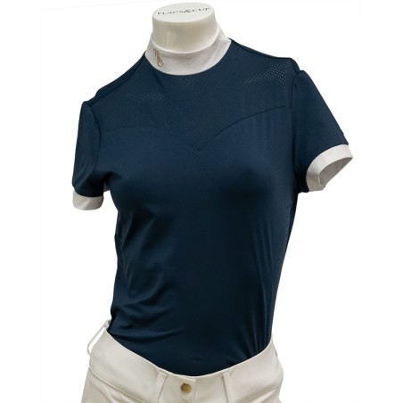 Souples, légers, confortables et respirants, les polos Flags&Cup sont idéaux pour la compétition. Avec son décolleté micro perforé, le polo de concours ISADORA vous apportera un style très féminin et élégant pour les concours. Manches longues. Fermeture zippé à l’arrière. Col blanc orné d’une ravissante broderie dorée F&C. Composition : 85% polyester, 15% jersey élastique.