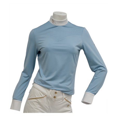 Souples, légers, confortables et respirants, les polos Flags&Cup sont idéaux pour la compétition. Avec son décolleté micro perforé, le polo de concours ISADORA ML vous apportera un style très féminin et élégant pour les concours. Manches longues. Fermeture zippé à l’arrière. Col blanc orné d’une ravissante broderie dorée F&C. Manches finition chemise dotées d'un bouton. Composition : 85% polyester, 15% jersey élastique.