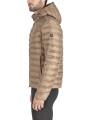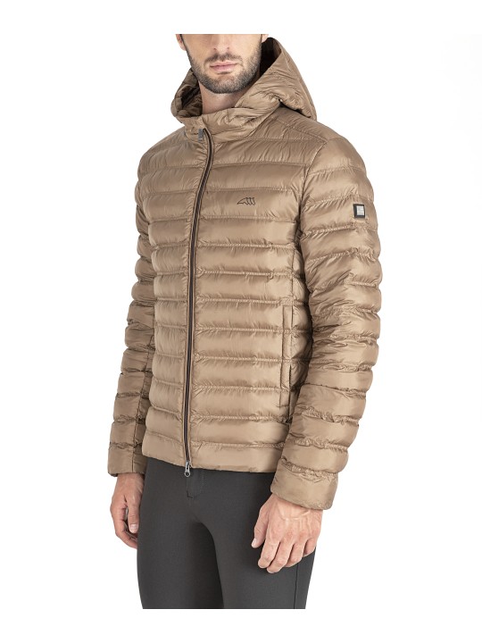 - Se caractérise par : une doublure de couleur contrastée, un rembourrage en duvet éco-responsable matelassé et un logo imprimé.