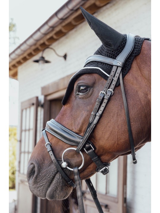 Le Bonnet Diamond est la combinaison parfaite du style et de la fonctionnalité. Il protège les oreilles du cheval contre les mouches pendant la monte et empêche le cheval d'être distrait. Parfait pour la compétition ou l'entraînement quotidien.