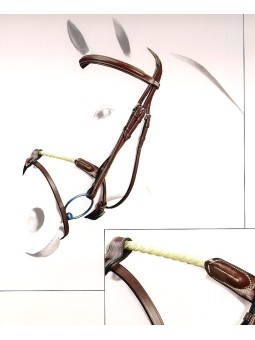- Bridon cuir avec frontal bombé et muserolle combinée corde.