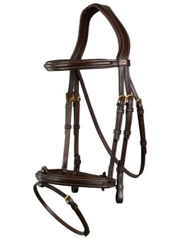 - Frontal et muserolle légèrement bombés en carré avec surpiqure décorative.