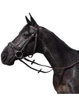 - Bridon avec frontal et muserolle combinée doublés et surpiqués.