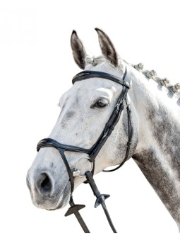 - Bride avec muserolle “double drop” finement travaillée avec broderie, fabriquée en cuir européen de qualité.