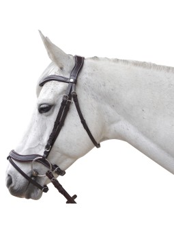 - Frontal, muserolle et têtière anatomiques, en cuir plat et doublé.