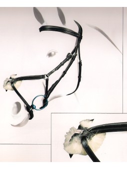 - Bridon cuir muserolle croisée avec frontal bombé.