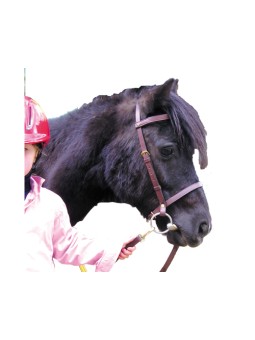 - Livré sans mors, il est équipé de rênes éducatives 4 couleurs à mousquetons, de montants de mors à rivets, d'une tétière et d'une muserolle simple plate.