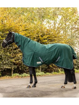 - Deux fermetures à scratch réglables en continu sur le couvre-cou et sangle de fixation pour le licol.