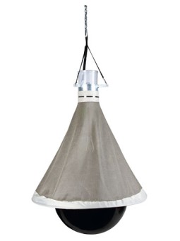 - Pièces fournies : balle avec pompe et sangle en tissu, écran en tissu, fil tressé pour tendre l'écran, chaîne à maillons de 100 cm pour l'accrocher, boîte de capture avec couvercle, support pour la boîte zinguée avec rubans et mousqueton, sangle en tissu en 3 parties avec mousqueton et chaîne à maillons 100 cm pour accrocher le piège, mode d'emploi.