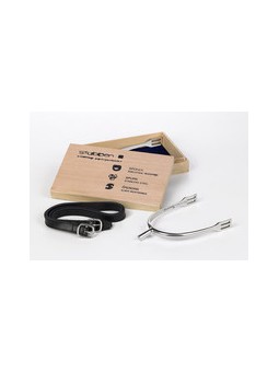- Courroies d’éperons en cuir incluses.