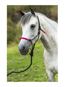 - Licol éthologique en corde polypropylène pré-nouée pour un contact précis avec pendant de têtière et muserolle doublés corde polypropylène souple entrelacée anti-frottements.