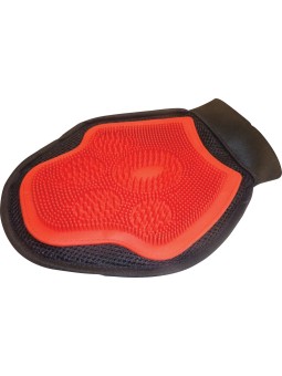 - Gant double face : une face picots en plastique TPR pour étriller et une face en velours polyester pour panser et lustrer.
