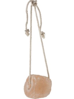 - Pierre percée pouvant se placer dans la mangeoire, sur un support pour bloc de sel ou bien être suspendue grâce à la cordelette fournie.