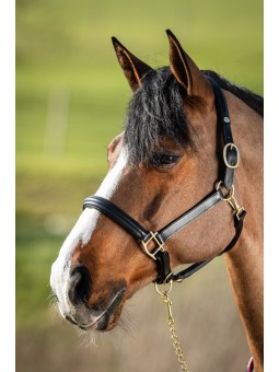 - Muserolle rembourrée et doublée de cuir souple.