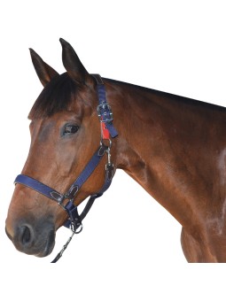 - Le licol de sécurité Flags&Cup est muni d’une têtière avec courroie de sécurité en cuir rouge, prévue pour casser lorsque que le cheval tire au renard et que la pression est trop forte.