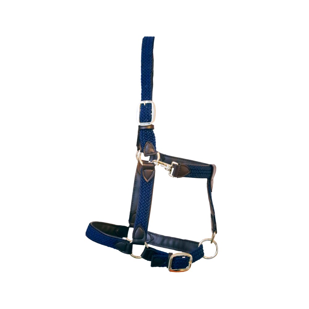 - Le Plaited Nylon Halter est fait de similicuir (100% respectueux des animaux). Ce cuir est recouvert de nylon tressé.