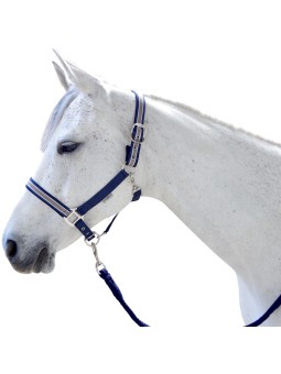 - Licol nylon avec muserolle et têtière contrastées et doublées.