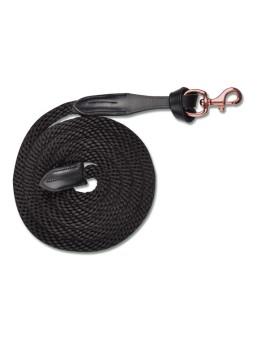 - Longe épaisse et élégante de présentation avec mousqueton laitonné qui est accroché avec un passant en cuir à la longe.