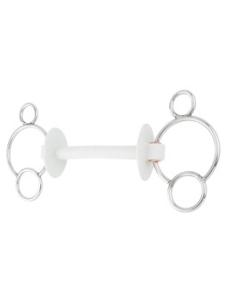 - Cette embouchure très souple de forme anatomique répartit la pression sur la langues et les barres de façon régulière. Les rondelles intégrées offre un encadrement latéral optimal tout en évitant les pincements.