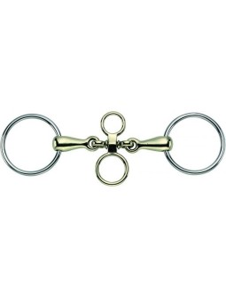 - Mors à 2 anneaux abaisse-langue double brisure en Aurigan et anneaux en acier inox.