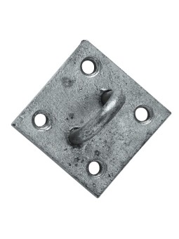 - Anneau soudé sur une plaque de métal de 5 mm d'épaisseur équipée de 4 trous de fixation pour vis à tête conique.